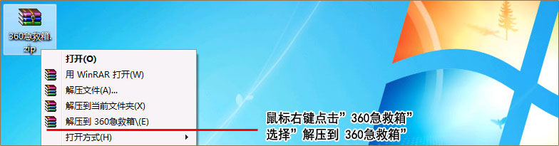 第一步 【点击下载连接】 https://weishi.360.cn/jijiuxiang/index.html下载【360急救箱】到桌面。鼠标右键点击"360急救箱",选择"解压到360急救箱"。
