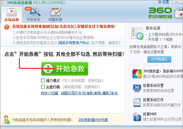 第四步 点击"开始急救"按钮,其他上什么都不用点。